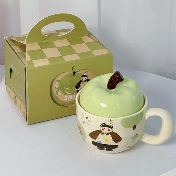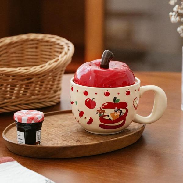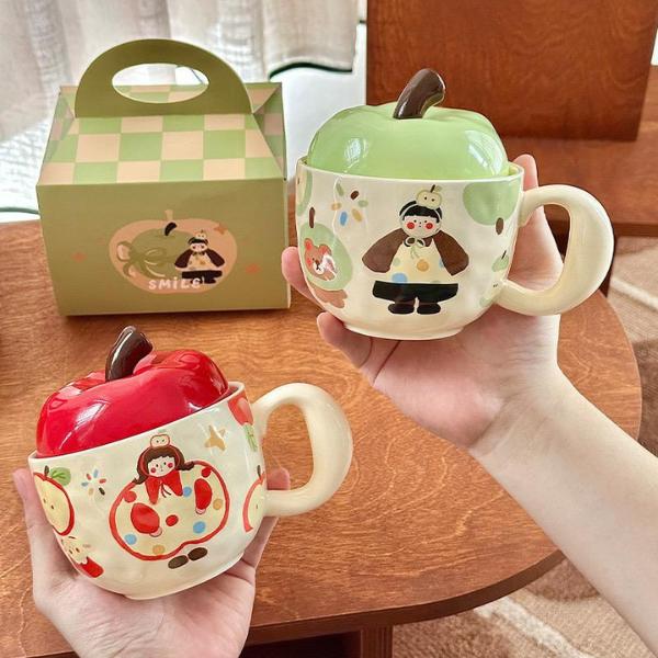 Terlaris Apple Mug with Lid Coffee Tea Milk Cup Girl Cup Boy / Mug Apel dengan Tutup Cute - Merah Keren