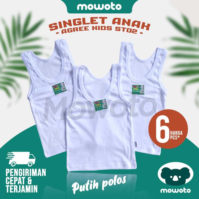 WAJIB PUNYA ! SINGLET AGREE KIDS ST 02 PUTIH / 3-6 PCS PAKAIAN DALAM ANAK 1-9 TAHUN DASAR WARNA PUTIH - 3 PCS, S ORI
