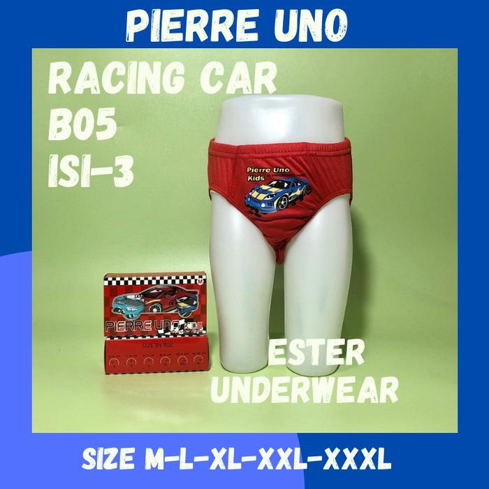 WAJIB PUNYA ! CELANA DALAM ANAK LAKI-LAKI PIERRE UNO B05 RACING CAR 1 BOX ISI-3 PCS - L, STANDAR ORI