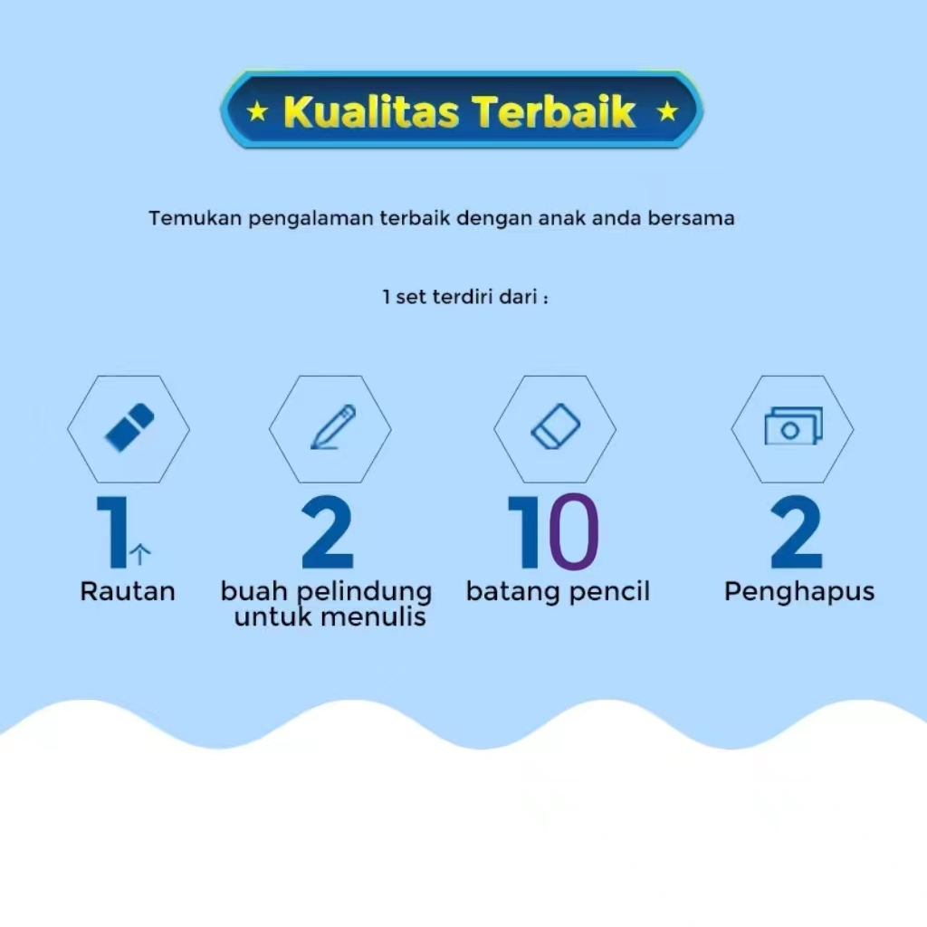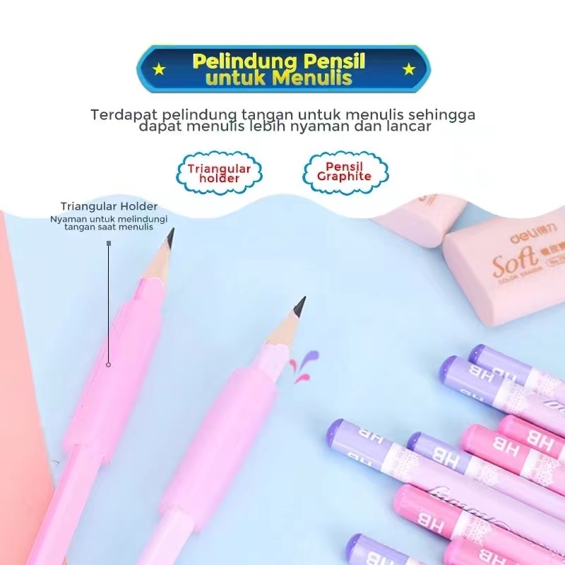 Study Set / Stationery Set 4 in 1 rautan pensil 12pcs pensil 2 penghapus 2 penutup pensil