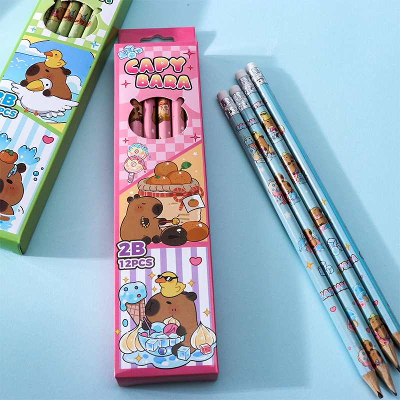 PENSIL 2B MOTIF LUCU / 12 PCS PENSIL MOTIF ASTRONOT CAPYBARA DAN WARNA / 1 LUSIN PENSIL MOTIF