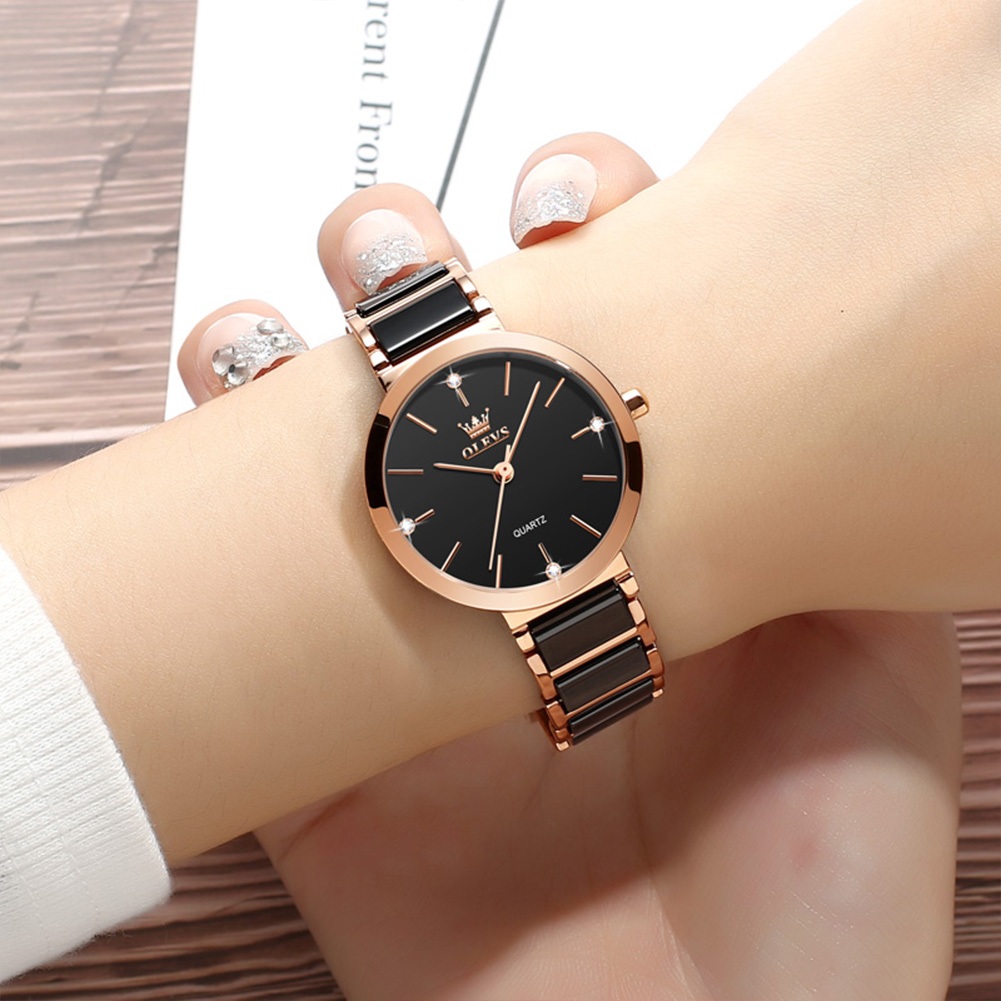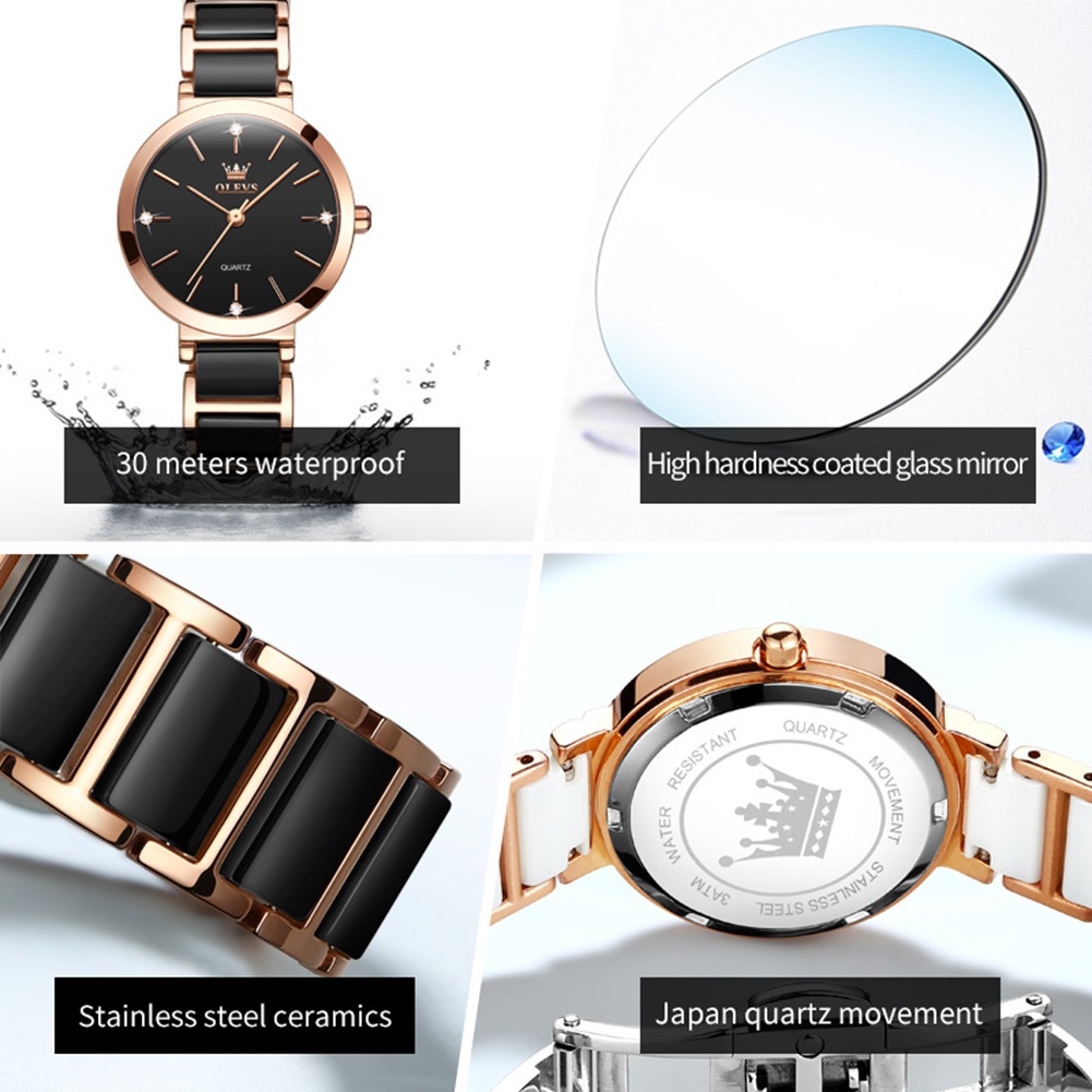 OLEVS Jam Tangan Wanita Original Anti Air Tahan Analog Fashion Terbaru Keramik Watch Women