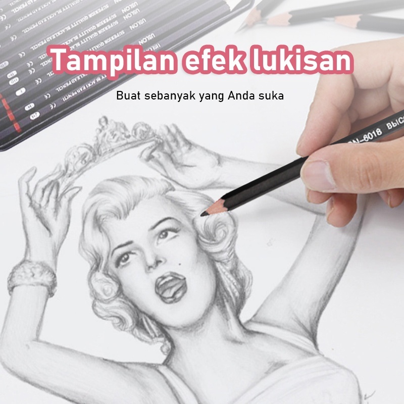 12 pcs Pensil Gambar Sketsa Set Lengkap 2H H F B HB 2B 3B 4B 5B 6B 7B 8B Charcoal Pensil Set / Pensil Gambar