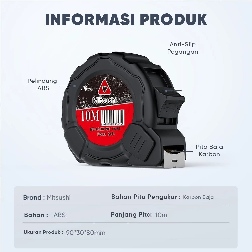 Meteran Tape Measure Elastis ABS Pengunci Manual Alat Ukur 10M/7.5M/5M