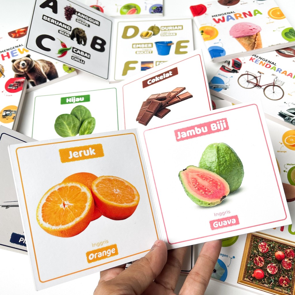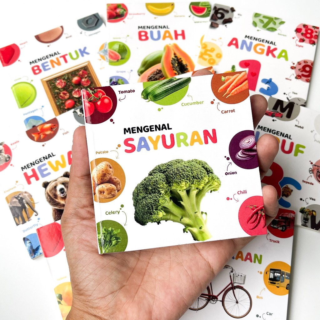 Buku Edukasi Mini Book BoardBook Hewan Buah Sayur Angka Bentuk Real Picture Bilingual