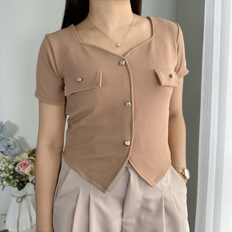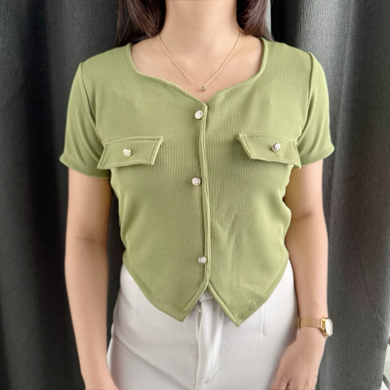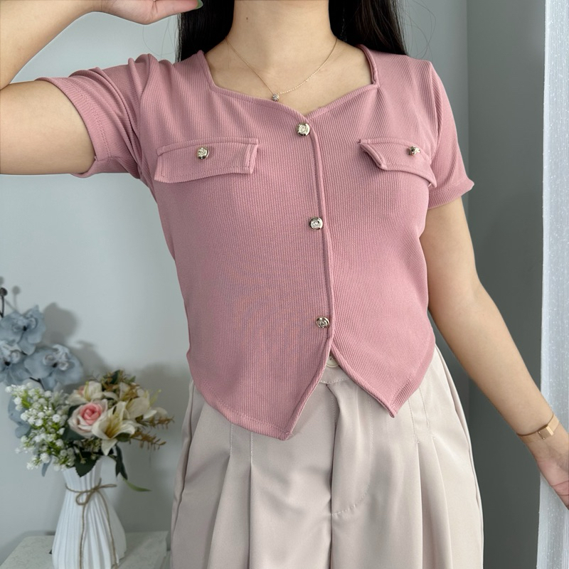 ENMEI Gebby Top 928 - Crop Top Wanita - Atasan Blouse Wanita - Kaos Korean Crop Bahan Knit
