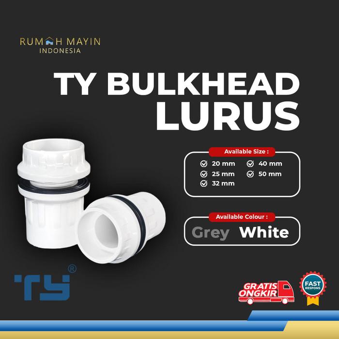 SUPER HEMAT ! TY BULKHEAD LURUS FITTING VAULT RING PIPA PIPE U – PVC BY 3 PAWNS - GREY, 20 MURAH