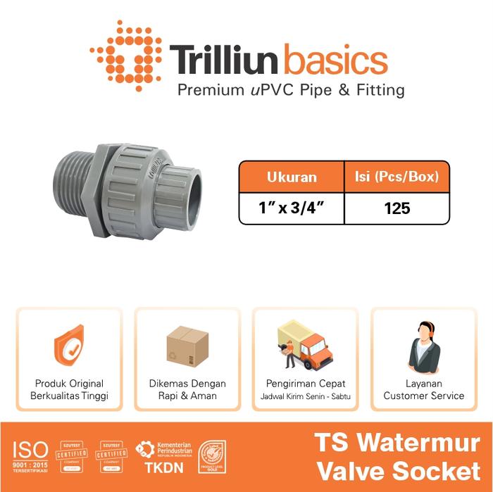 SUPER HEMAT ! FITTING PIPA UPVC TRILLIUNBASICS TS WATERMUR VALVE SOCKET 1" X 3/4" INCH MURAH