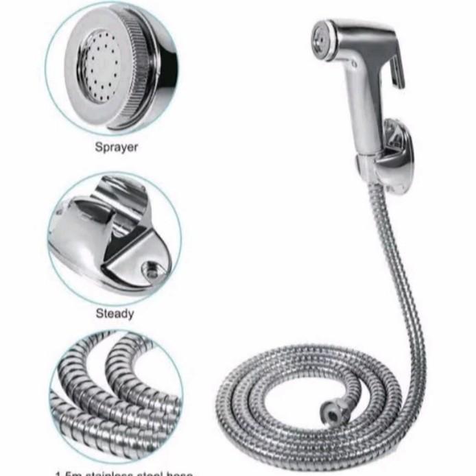 SUPER HEMAT ! SET KEPALA SELANG HOLDER JET SHOWER SPRAY TOILET BIDET KLOSET 150CM PLASTIK KARET MINIMALIS - WARNA MURAH