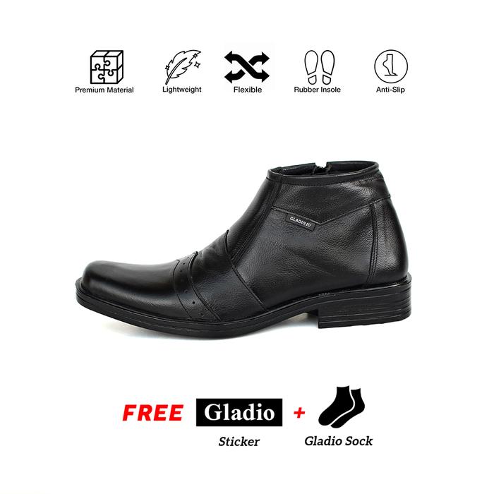 Gladio Footwear - Sepatu Pantofel Tinggi Kulit Sapi Casual Formal Pria Beto Hitam Boots Karet Shoes
