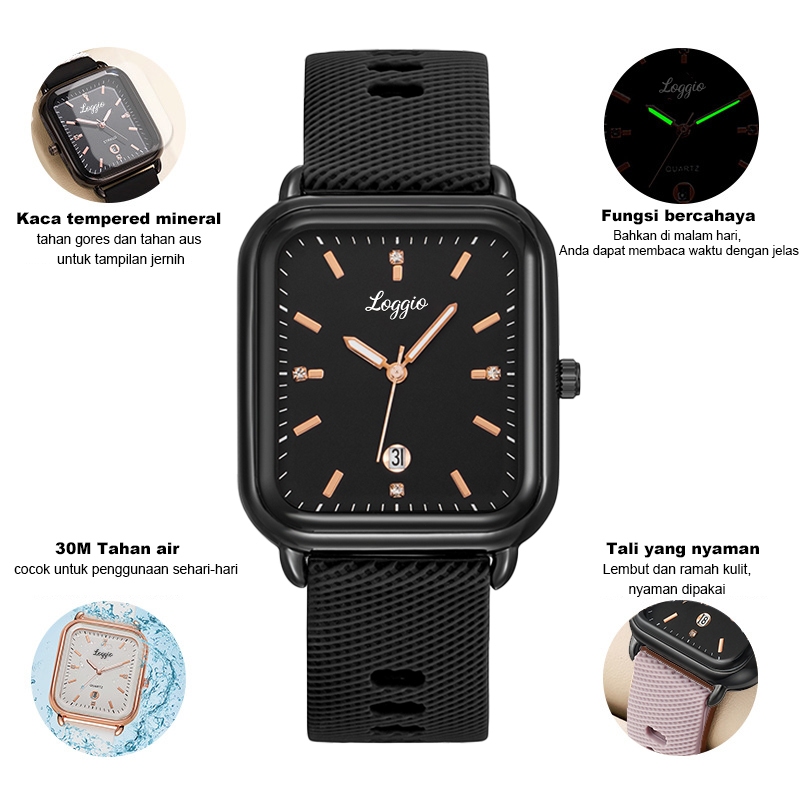 Loggio Jam Tangan Wanita Korea Anti Air Kuarsa Kasual Elegan Tali Silikon Jam Tangan Cewek Original