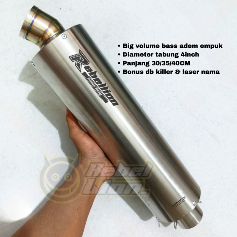 Silincer knalpot big volume bass adem empuk original Rebellion type Araco series inlet tersedia 50/51mm