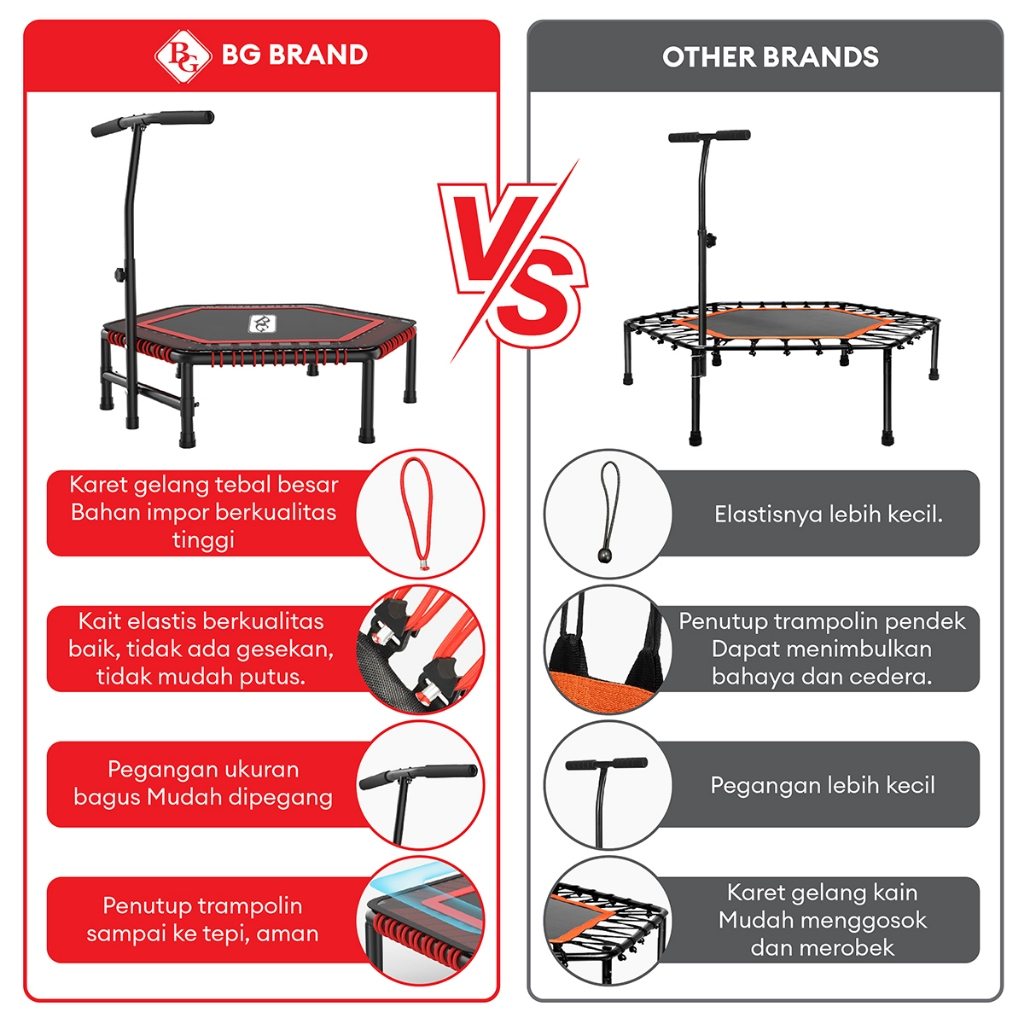 Trampoline Dewasa Kuat 200KG – Alat Olahraga Fitness, Lompat Elastis Indoor & Outdoor, Latihan Kardio