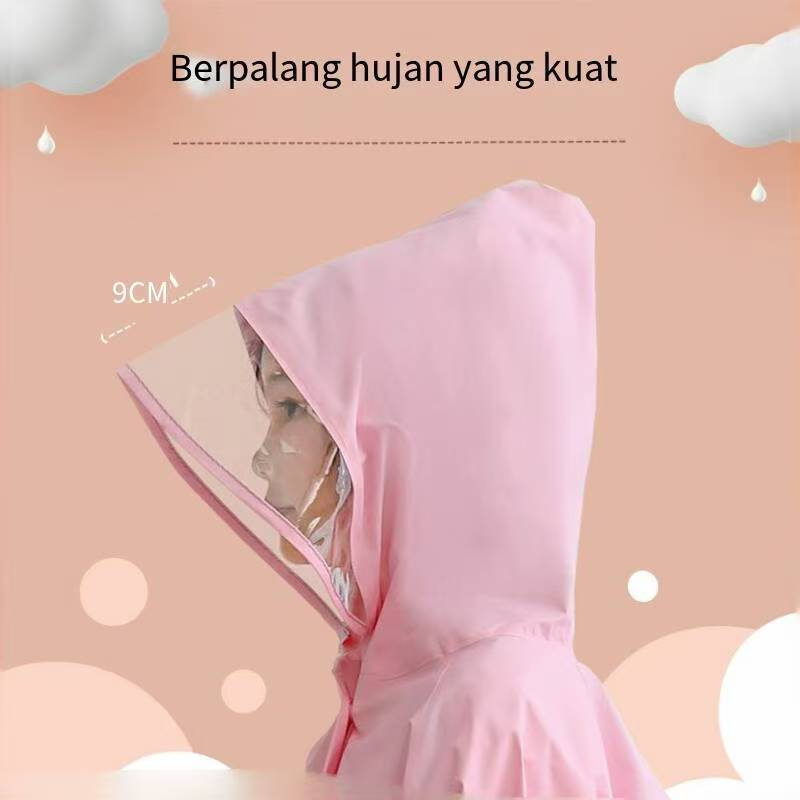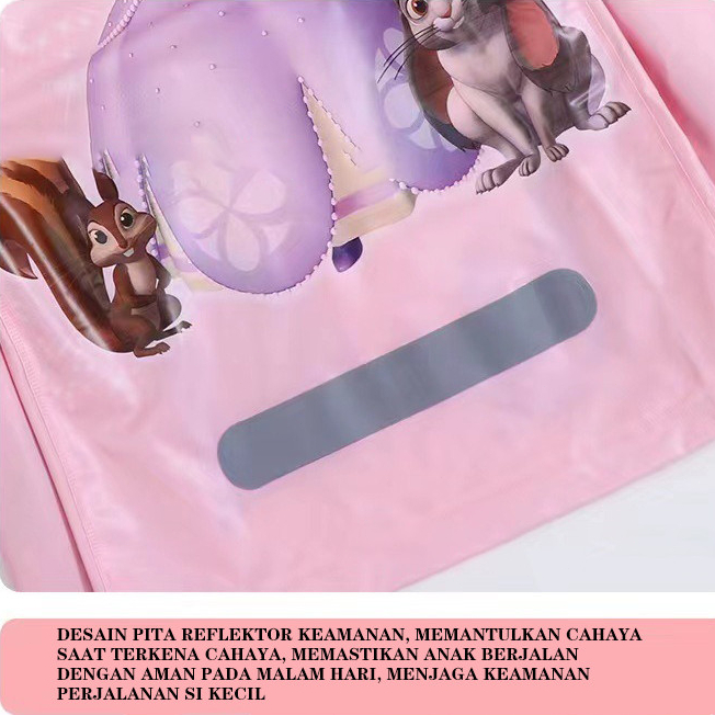 Jas hujan anak-anak Kuromi panjang seluruh tubuh tahan air interior dapat menampung tas sekolah