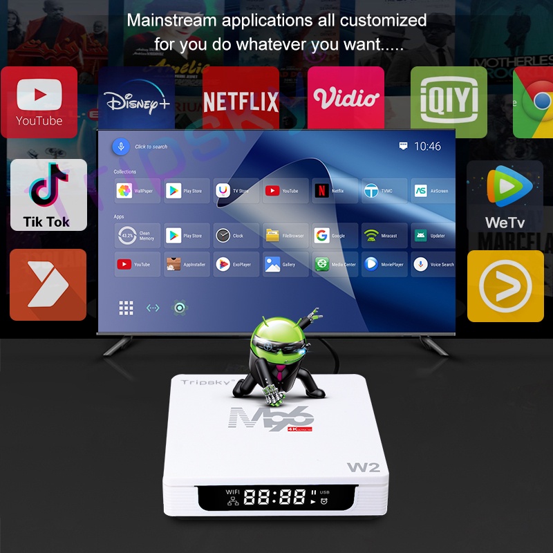 Tripsky amdroid tv box M96-w2 Tv Box 4GB Ram 32GB Rom Support Bluetooth 4K Android Tv Box Android11.0 Smart Tv Box
