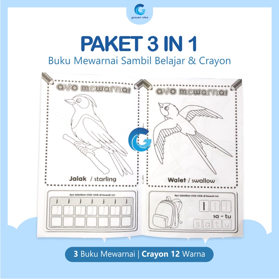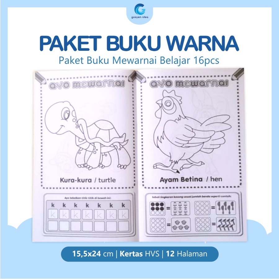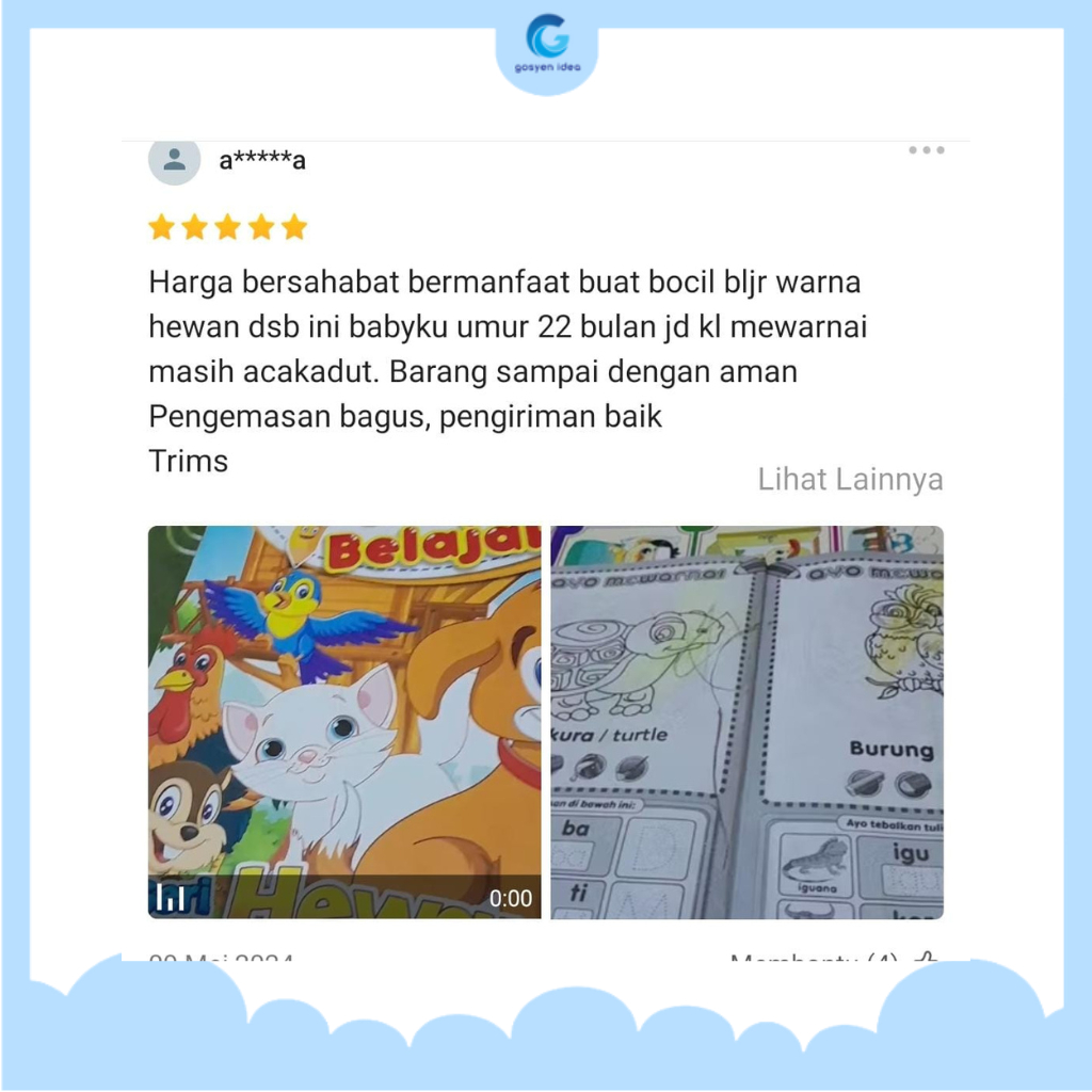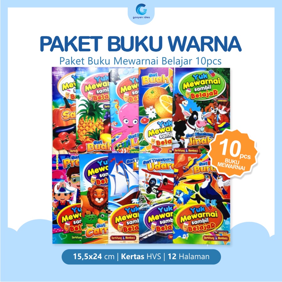 Buku Edukasi Anak Paket 10 Buku Mewarnai dan Belajar Anak Motif Buah, Sayur, Kendaraan, Binatang