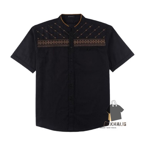 Baju Koko Pria Dewasa Lengan Pendek Bordir Alkhalis Premium
