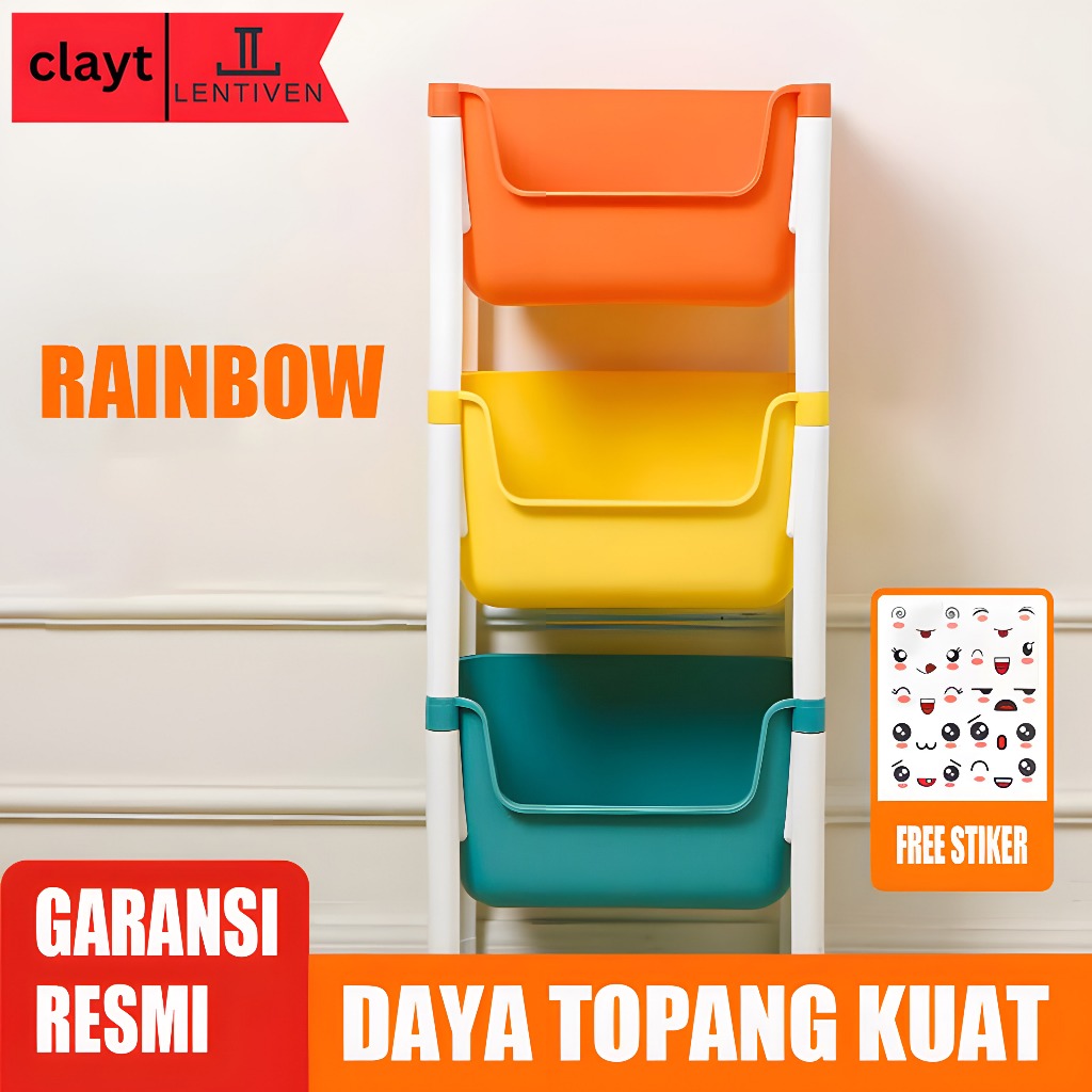 CLAYT LENTIVEN Rak Susun Penyimpanan Terbuka Serbaguna Rak Trolley Susun Dengan Roda Rak Buku Tebal Plastik Toy Storage