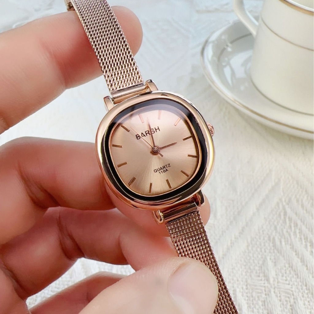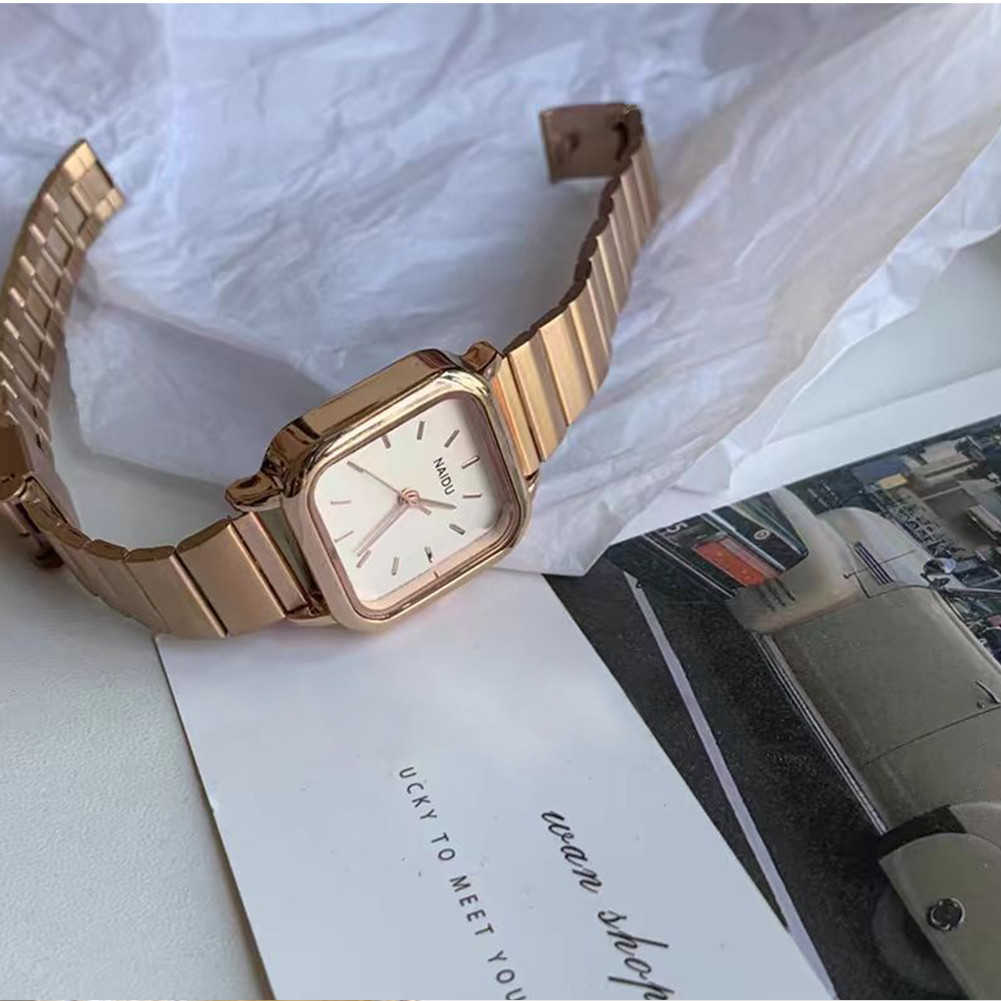 Jam Tangan Wanita Terbaru Kuarsa Jam Tangan Tali Baja Gaya Kasual Vintage Square Belt Warna Silver Gold Elegan