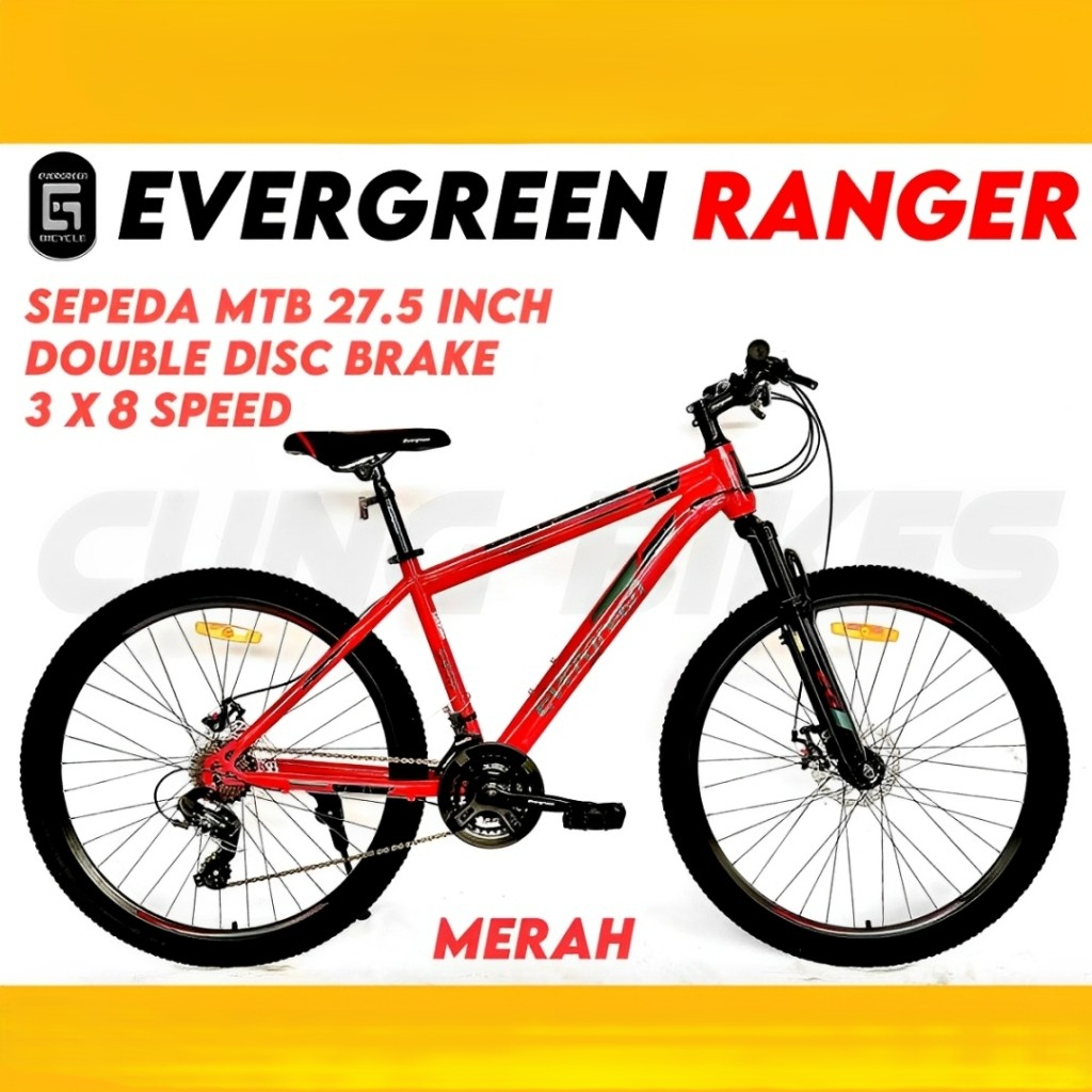 SEPEDA GUNUNG MTB 27.5 INCH EVERGREEN RANGER 545 | 24 SPEED DOUBLE DISCBRAKE LAKI LAKI & PEREMPUAN BERKUALITAS ORIGINAL
