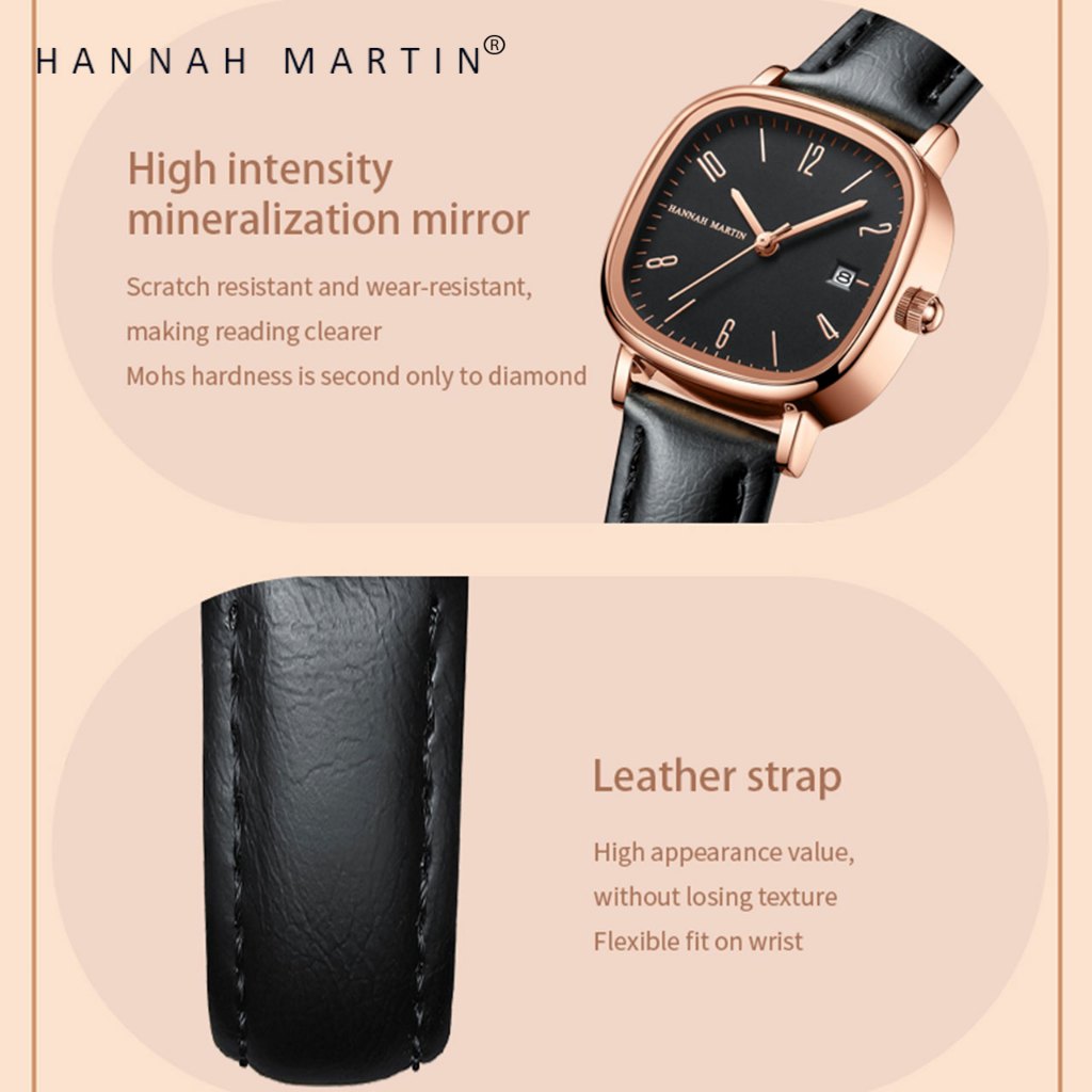 HANNAH MARTIN Jam Tangan Wanita 100 PERSEN Original Korean Model Terbaru Keren Quartz CEWEK Kulit Anti Air Women Watch Per