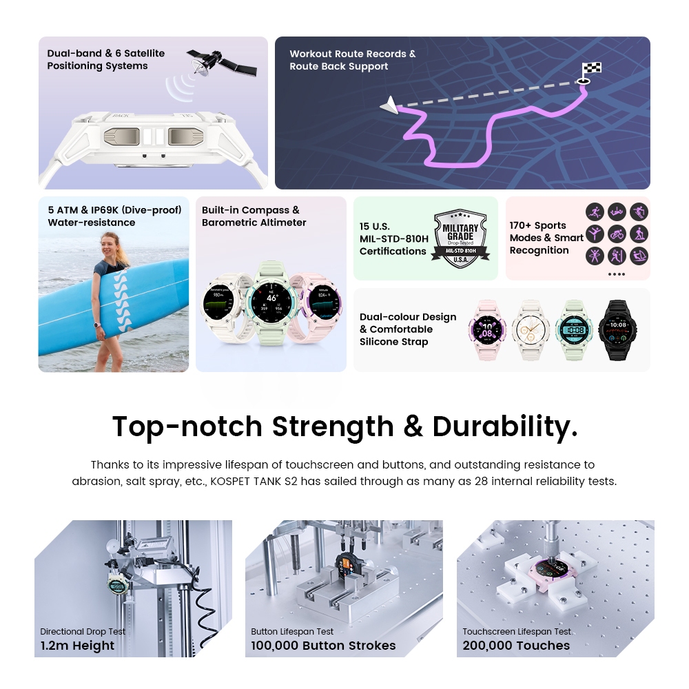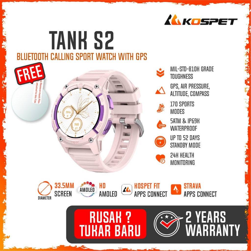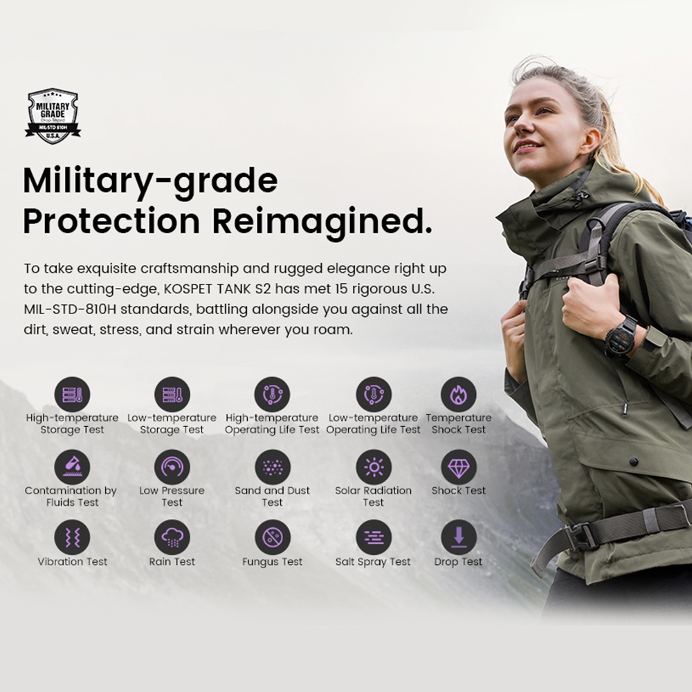 Kospet Tank S2 Bluetooth Calling Rugged Smartwatch GPS 1.32" Amoled SPO2 5ATM 170+ Sports Modes