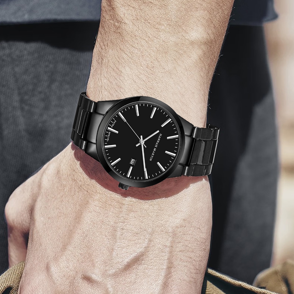 HANNAH MARTIN Jam Tangan Pria 100 PERSEN Original Business Analog Tanggal Stainless Steel 1756