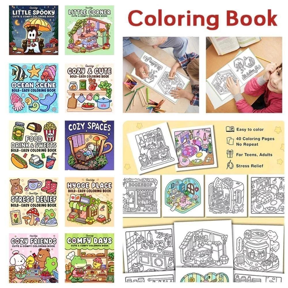 【】Coloring Book with 48 Pages For Kids Cute Doodles Book Educational Relaxation Book Graffiti Painting