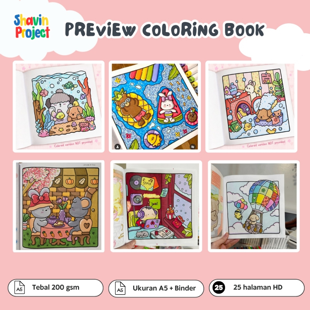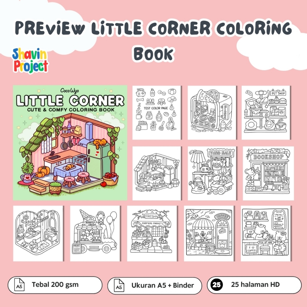 Coloring book 25 pages bold and easy relaxing little corner soft and comy 200gsm ukuran A5