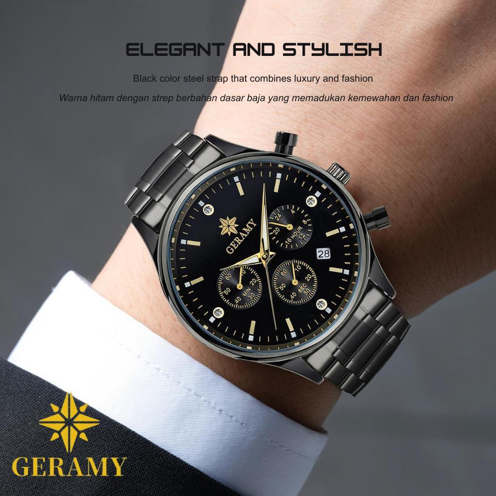 GERAMY S002 Jam Tangan Pria Original Anti Air Stainless Steel Quartz Kalender Multi Fungsi Chronograph