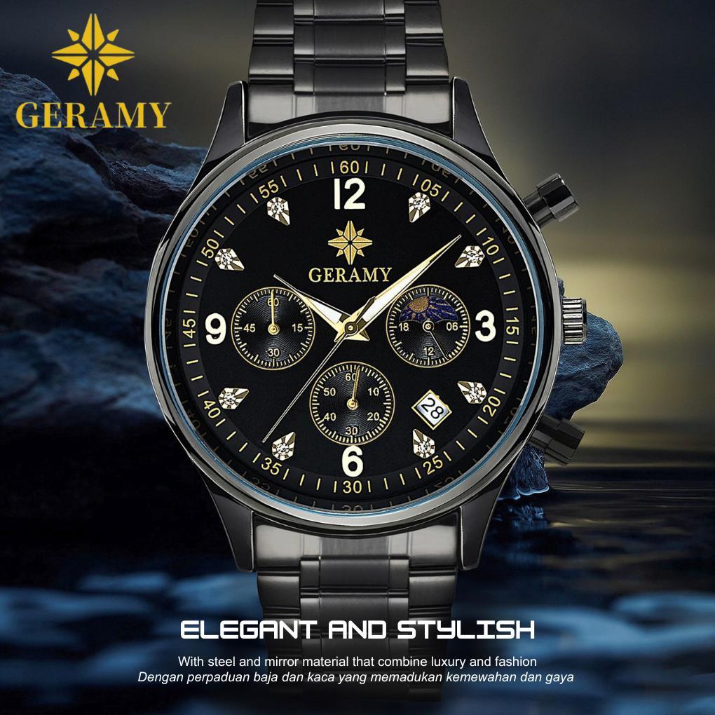 GERAMY S005 Jam Tangan Pria Original Anti Air Stainless Steel Quartz Kalender Multi Fungsi Chronograph