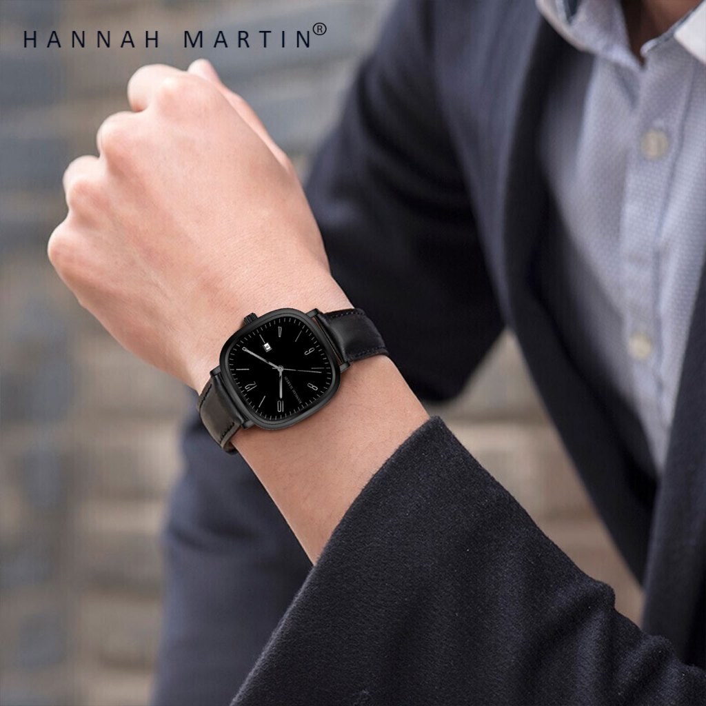 HANNAH MARTIN Jam Tangan Pria 100 PERSEN Original Korean Model Terbaru Keren Quartz COWOK Kulit Anti Air Men Arloji 1411
