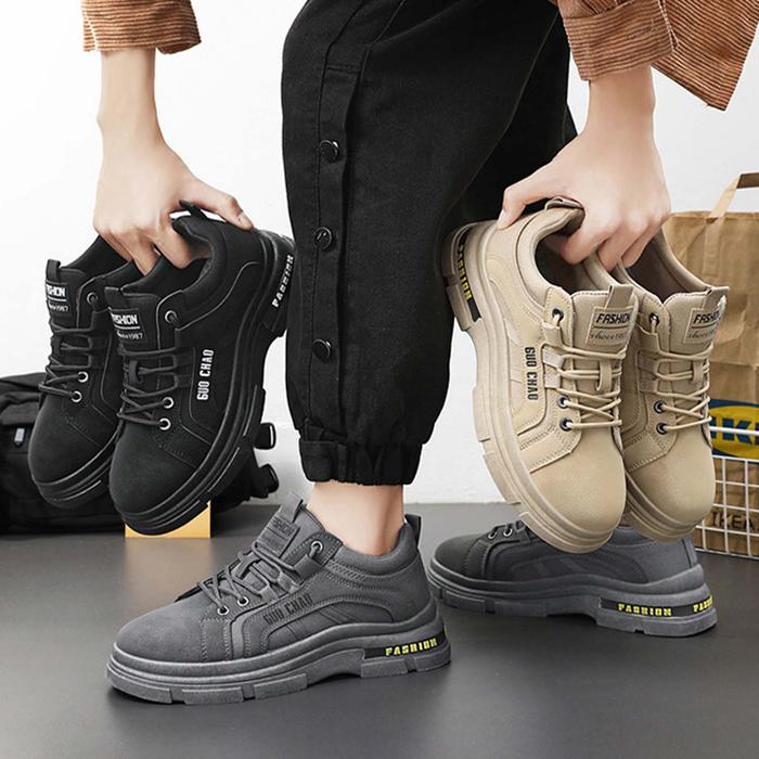 Luckyfanstore Sepatu Pria Sneakers Boot STRIDERS Kerja Outdoor Shoes Kasual Hitam Abu Cokelat - E22