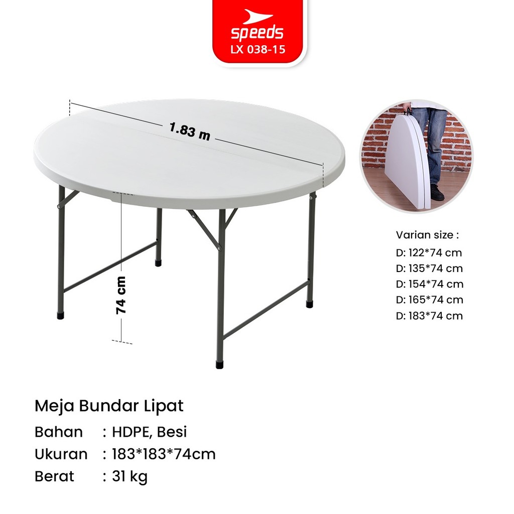 SPEEDS Meja Lipat Plastik 183x183x74cm Folding Table Lingkaran Indoor Outdoor Piknik Serbaa Besar Meja Makan 038-15