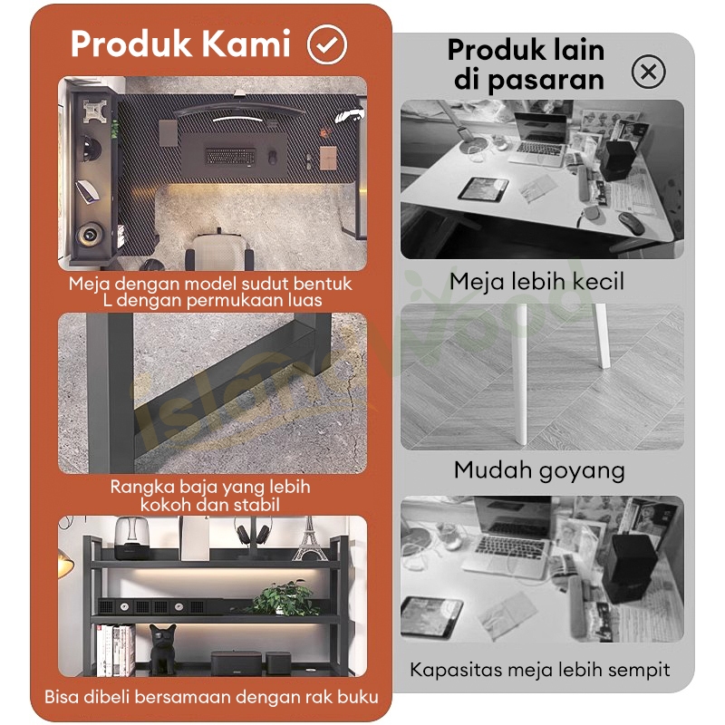 Meja Gaming Meja L Meja Komputer Minimalis Modern Meja Belajar Hitam Meja kantor Meja Laptop Meja Kerja