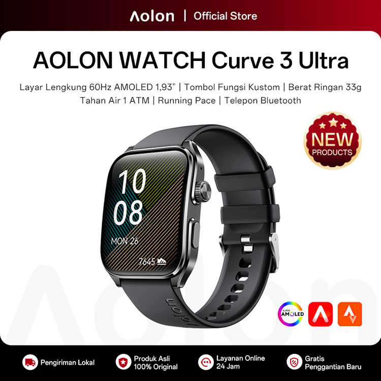 Aolon Curve 3 Ultra Jam Smartwatch 60Hz Amoled 1.93-inci Tombol Kustom Tahan Air 1 ATM Telepon Bluetooth Pace Olahraga P