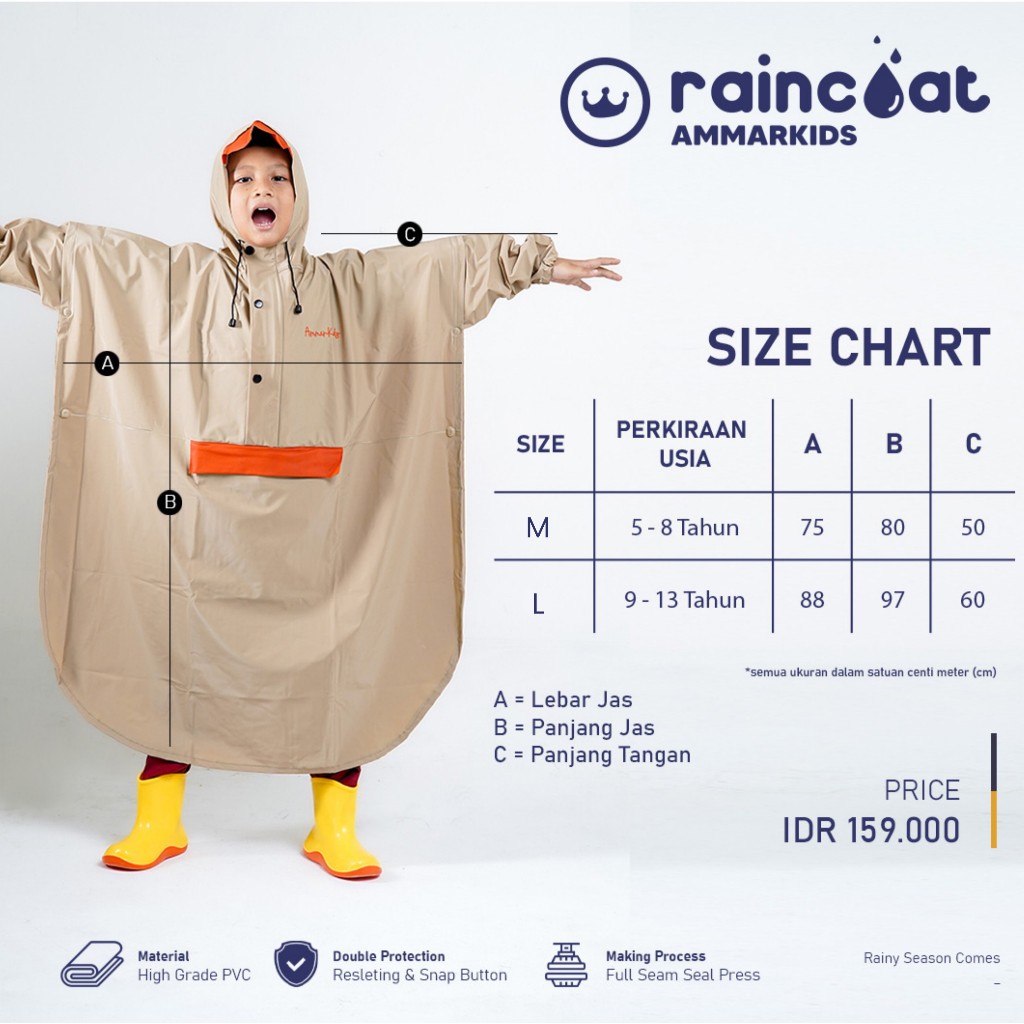 Jas Hujan Anak RAINCOAT AMMAR KIDS Mantel Ponco Terusan Tebal Premium