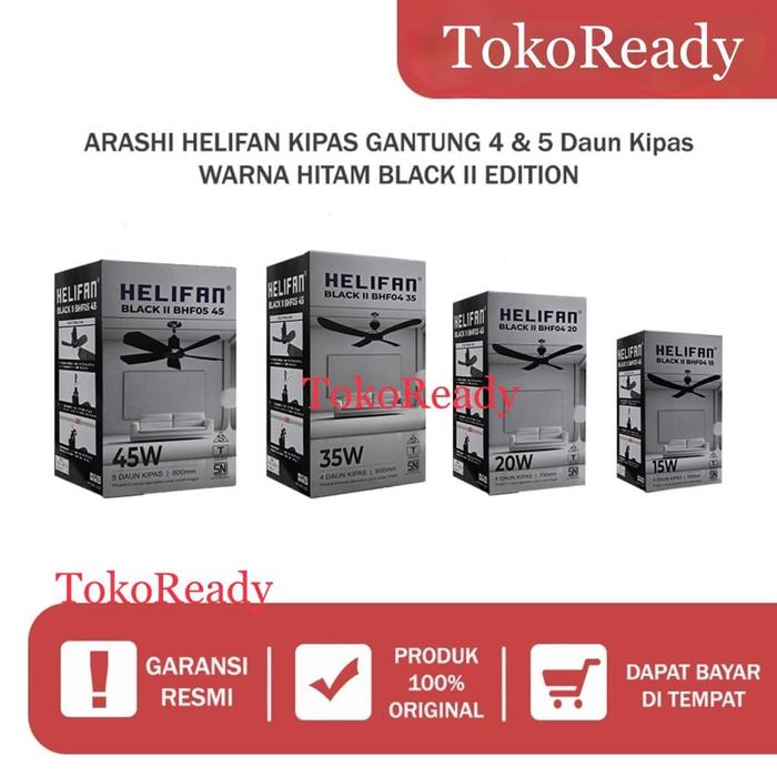 Helifan Black 2 Kipas Angin Gantung Baru 15w 20w 35w & 45w New - 15watt 4baling