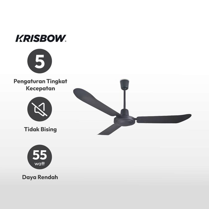 AZKO Krisbow 48 inci Kipas Angin Plafon Orb - Hitam Ceiling Fan Kipas Langit-Langit Atap Penyejuk Udara Plafon Fan
