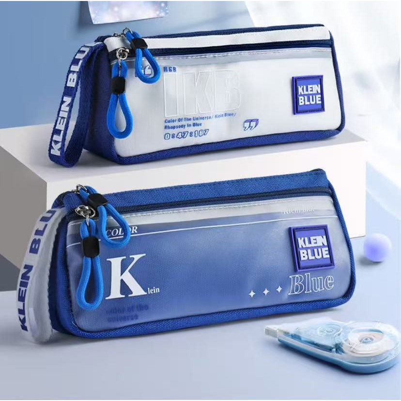 Kotak Pensil Biru / Tempat Pensil Aesthetic / Tas Pensil Aman Untuk Dicuci / Pencil Case Material Kain Kanvas / Alat Sek