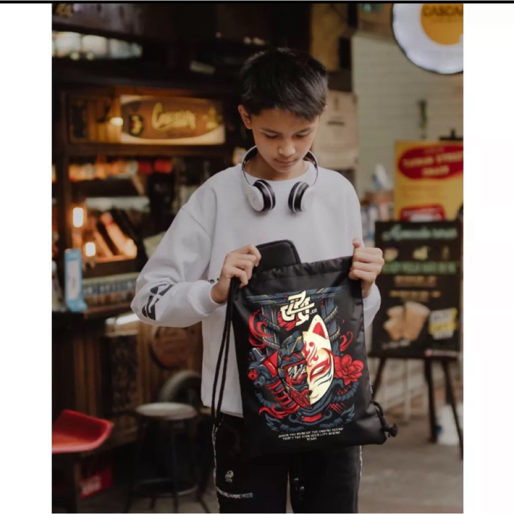 BLEESED - DrawstringBag Sekah Tas Tali Serut Pria Wanita Waterproof Multipungsi StringBag Hitam Terbaru