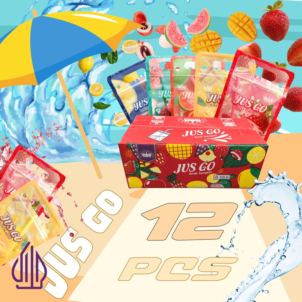 Halal Jus Buah JUS GO 12 Pcs (5 Rasa) – Segar Kental Siap Minum, Pouch Praktis Tanpa Es, Aman untuk Anak & Dewasa, Cocok