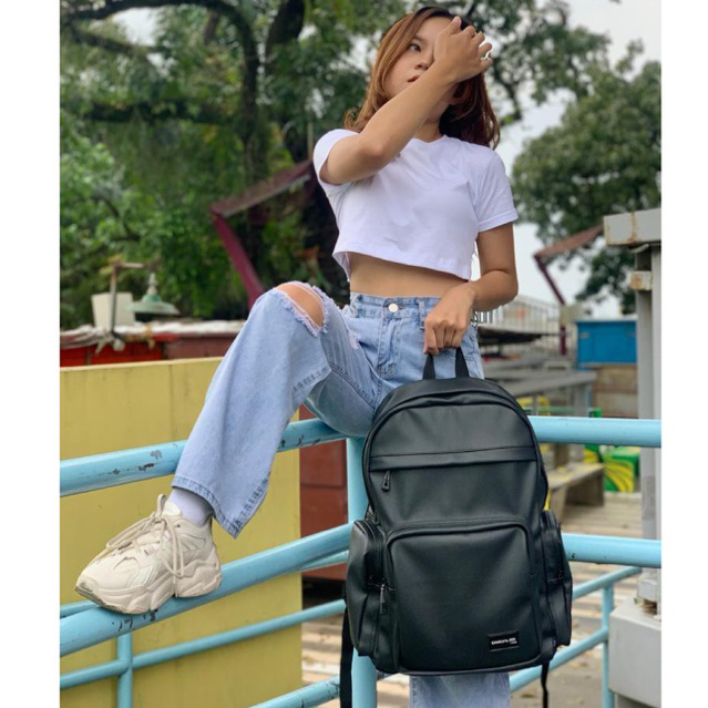 DHON.ID Tas Ransel hitam Pria wanita Waterproof anti air unisex backpack laptop punggung