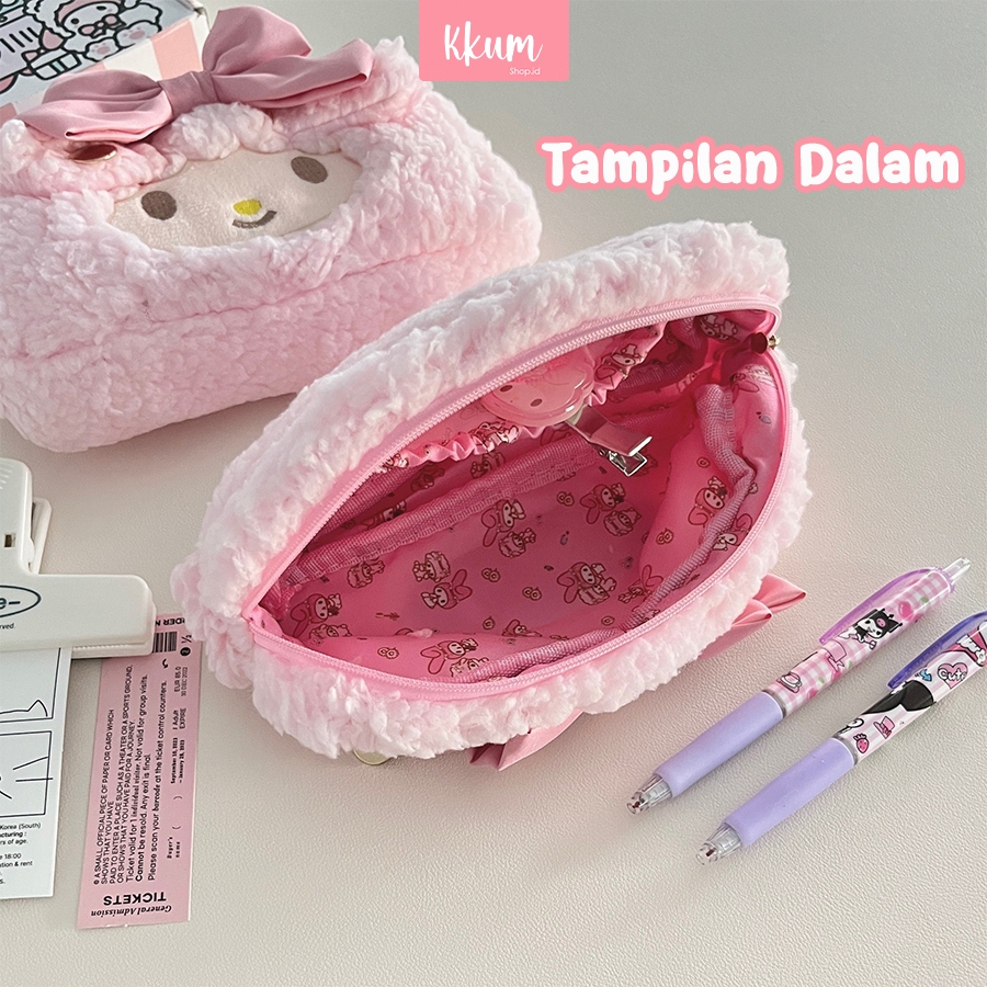 Kotak Pensil Fluffy Cute Pink Pencil Case Large Kawaii Stationery School Supplies