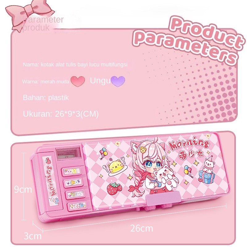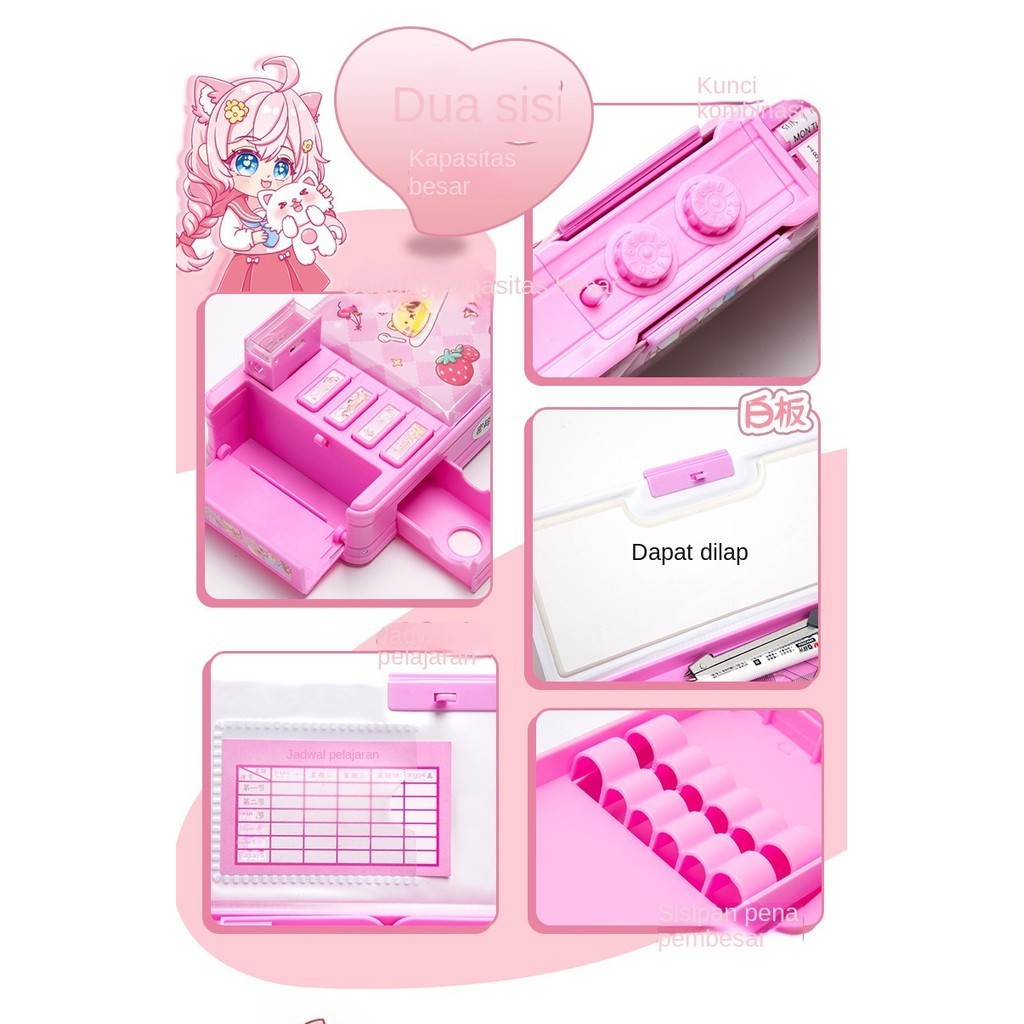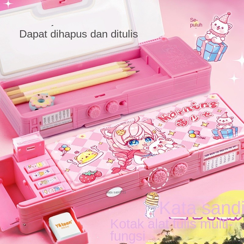 Kotak alat tulis gadis Kotak pensil kata sandi multi-fungsi wanita yang cocok untuk siswa kelas 1-3 TK