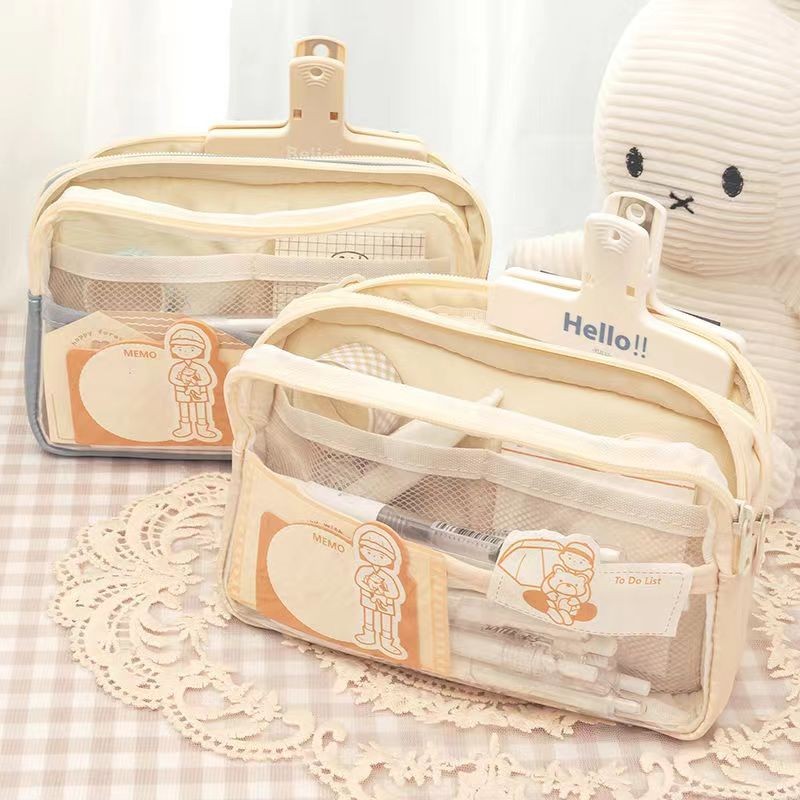 CARAT Kapasitas Besa Kotak Pensil Transparan Aesthetic Pencil Case Large Tempat Pensil Pen Pouch Lucu Stationery Organiz