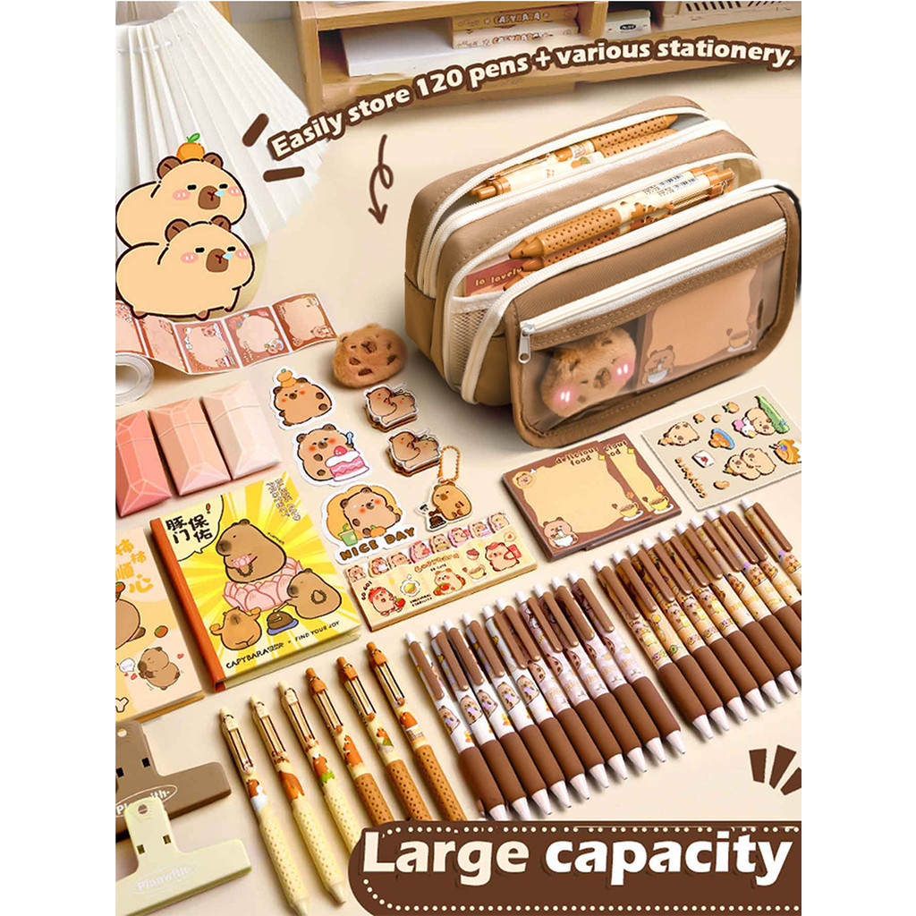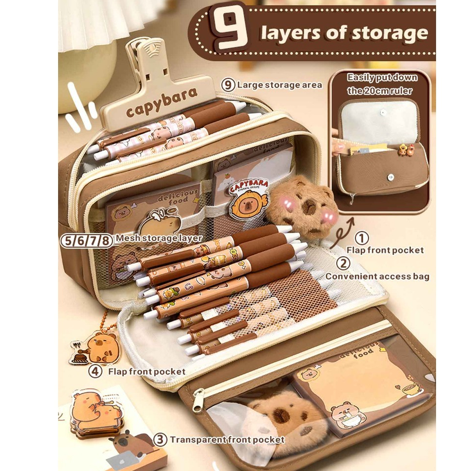 [DOTDING] Tempat Pencil Siswa Tas Pensil kapasitas besar - Free Brooch Sticker Set Model Minimalis Korea H436
