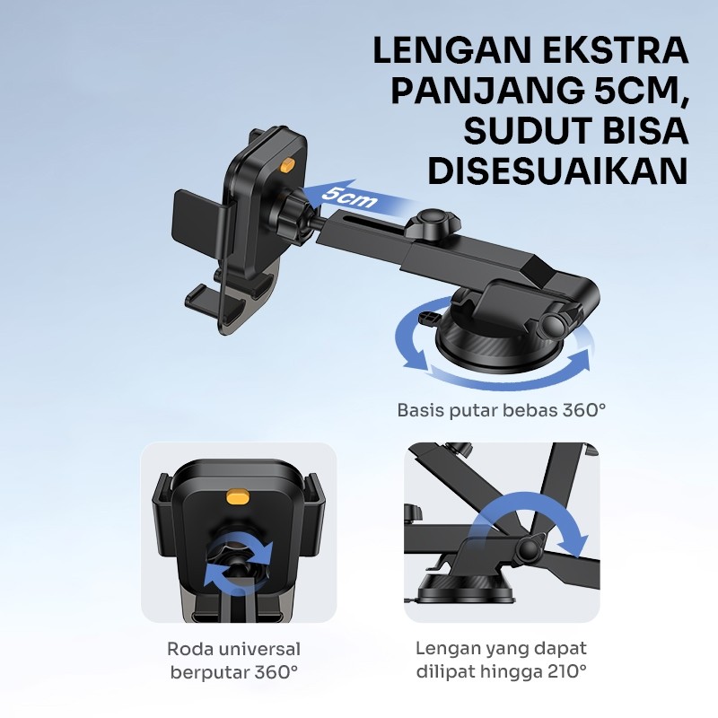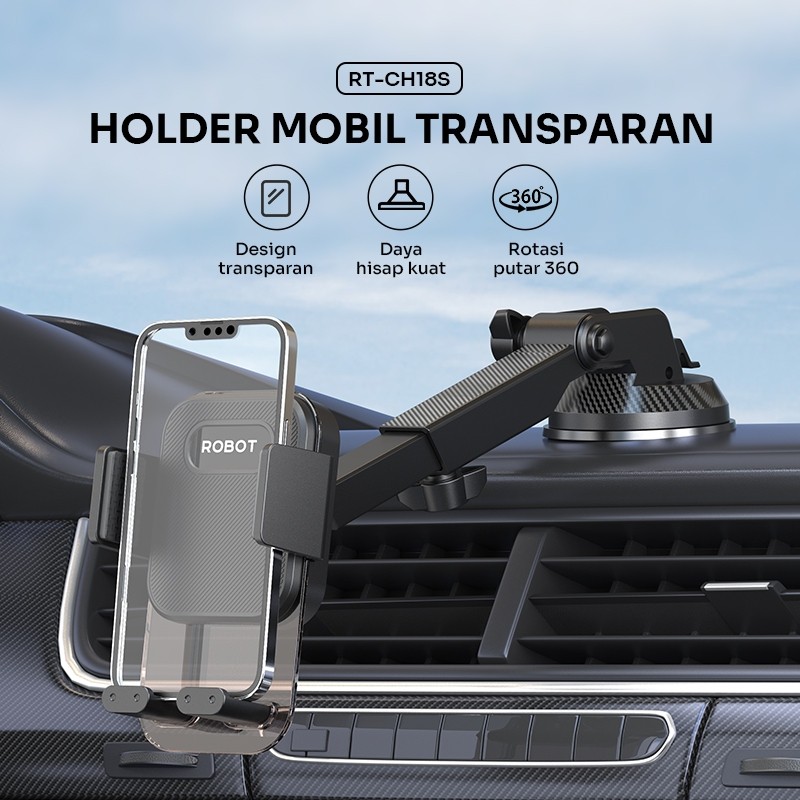 ROBOT Center Console Car Holder Mobil Transparant Design Rotasi 360° RT-CH18S Original - Garansi 1 Tahun