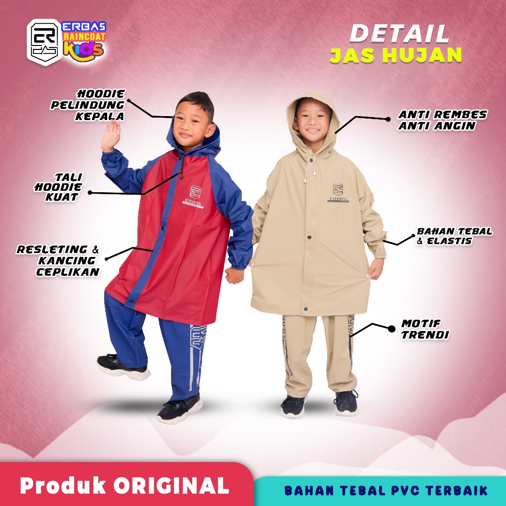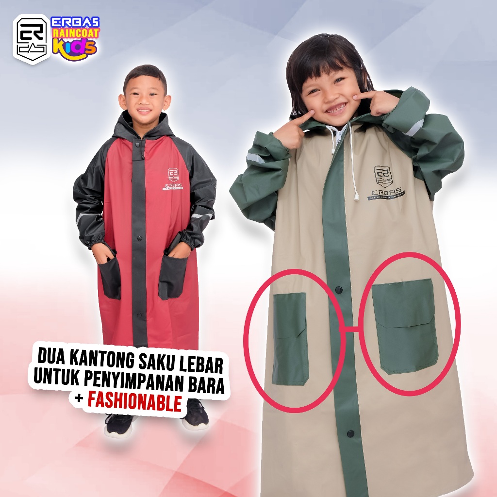 ERBAS | Jas Hujan Anak Laki laki Perempuan Mantel Kids Cewek Cowok Raincoat Anak Umur 6 - 12 Tahun