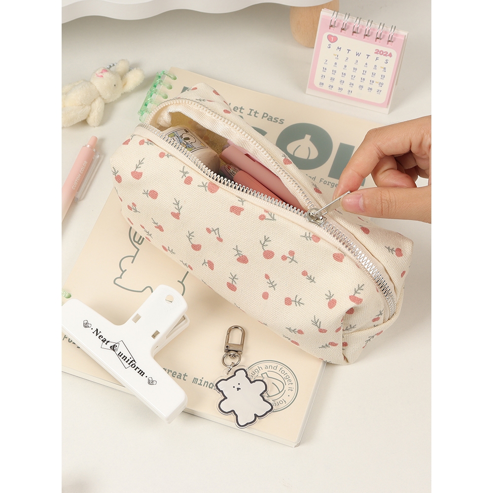 Kinokimi - Kotak Pensil Sekolah Bahan Kain Kotak Pensil Imut Pencil Case Kotak Pensil Sekolah Motif Little Flower Peremp